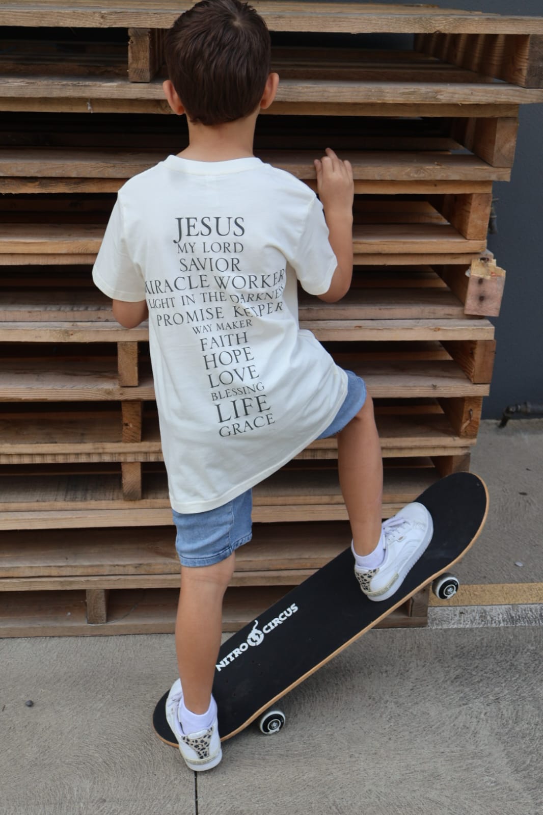 This tee places Jesus front and center—surrounded by powerful affirmations that speak life and truth:
