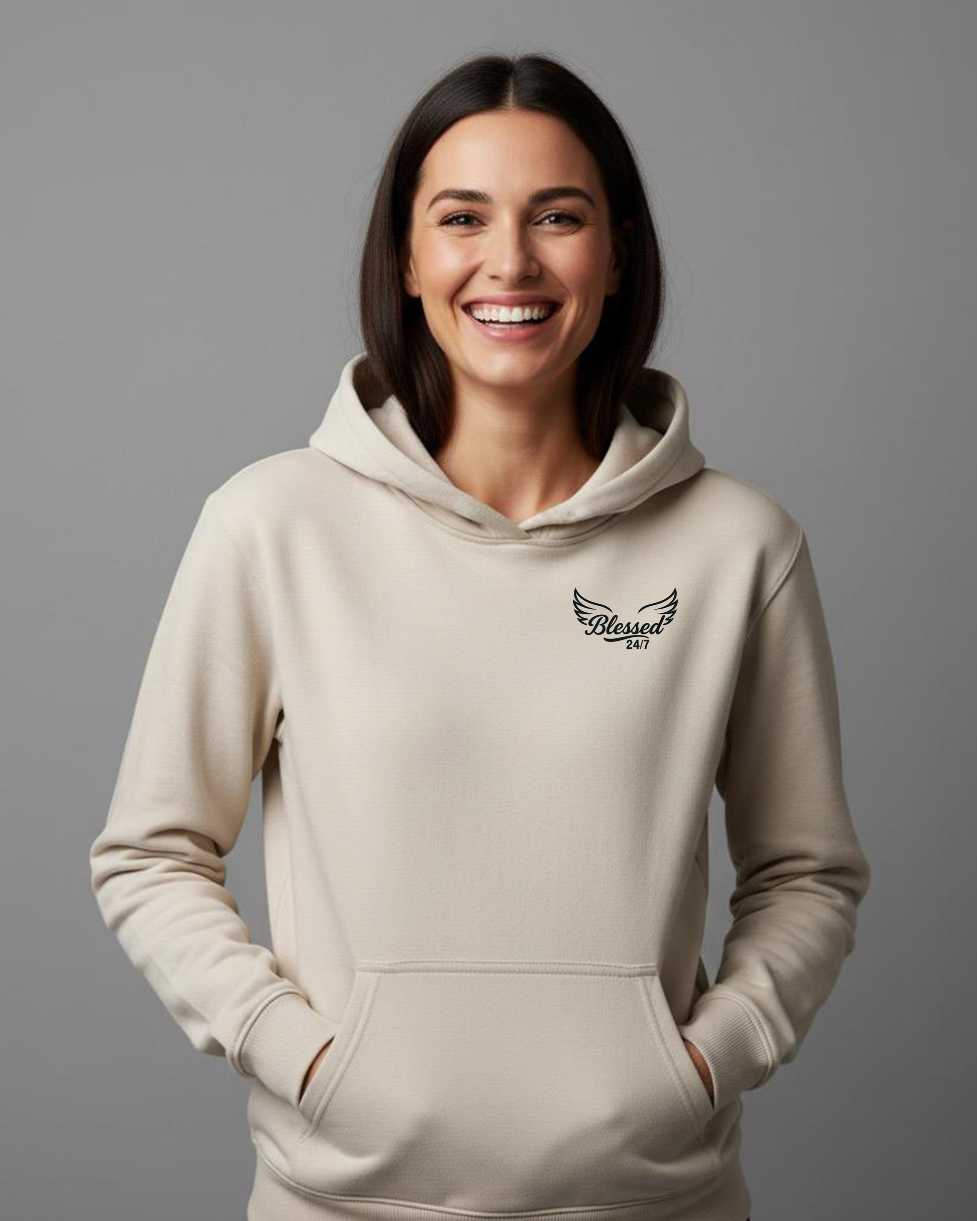 Blessed 24/7 isn't just a phrase—it's your lifestyle. Whether you're walking in purpose, resting in grace, or standing in faith, this hoodie affirms your devotion. Wear your worship. Speak your truth. Live your blessing. Jesus first—always.